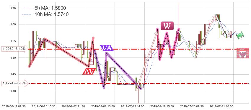 ♘ 支撑价格位1.5262,可信任强度57.31%,距离最后交易2019-07-31 15:00形成的收盘价格1.5800相差 -3.40%