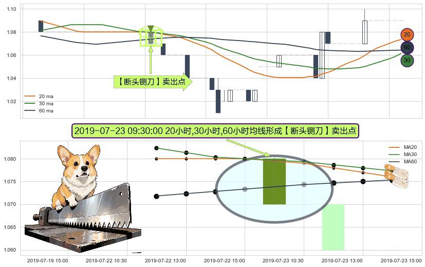 ⚀ 2019-07-23 09:30:00小时显现 20小时-30小时-60小时均线 【断头铡刀】卖出点 看空信号,后市看跌,卖出