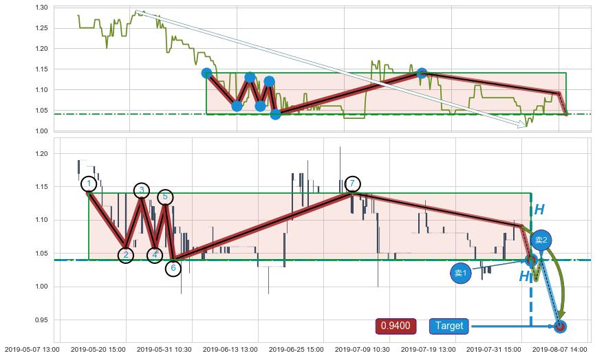 ➣ 最小中继整理跌幅→𝐇: 0.1000000 (上平行阻力线与下平行支撑线的垂直距离)