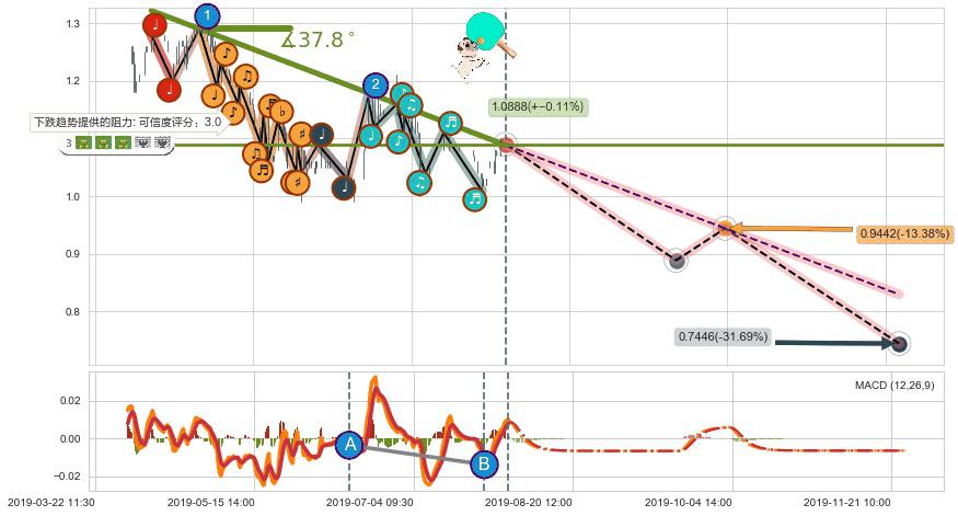 ➣ 预测:2019-10-04 11:00,【试探阻力】稳定目前下跌趋势的前提下,预测价格:0.9442