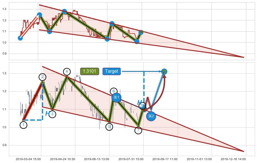 ➢ 最小中继整理涨幅→𝐇: 0.210000 (𝐇楔型旗杆的长度:楔型起点→顶点)