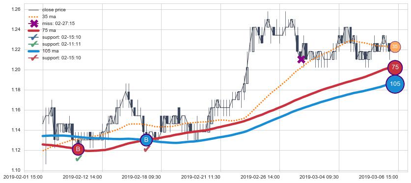 上涨趋势02-01 15:00-03-06 15:00,均线105, 75确认关键支撑2处