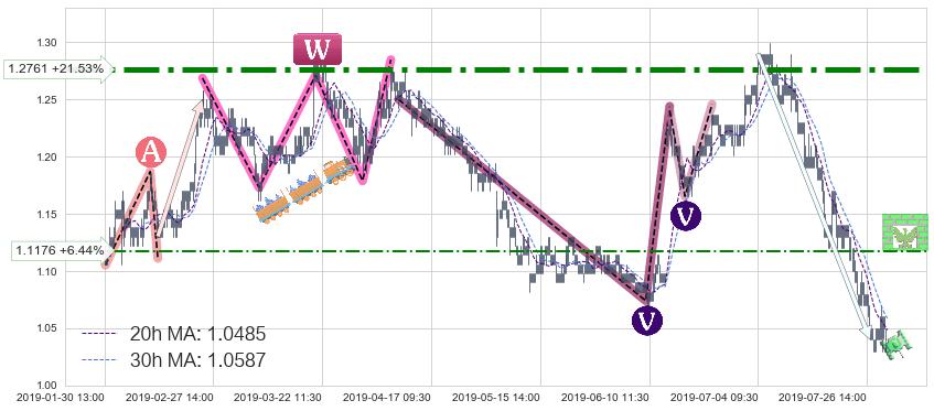 ♘ 阻力价格位1.2761,可信任强度96.76%,距离最后交易2019-07-31 15:00形成的收盘价格1.0500相差 +21.53%