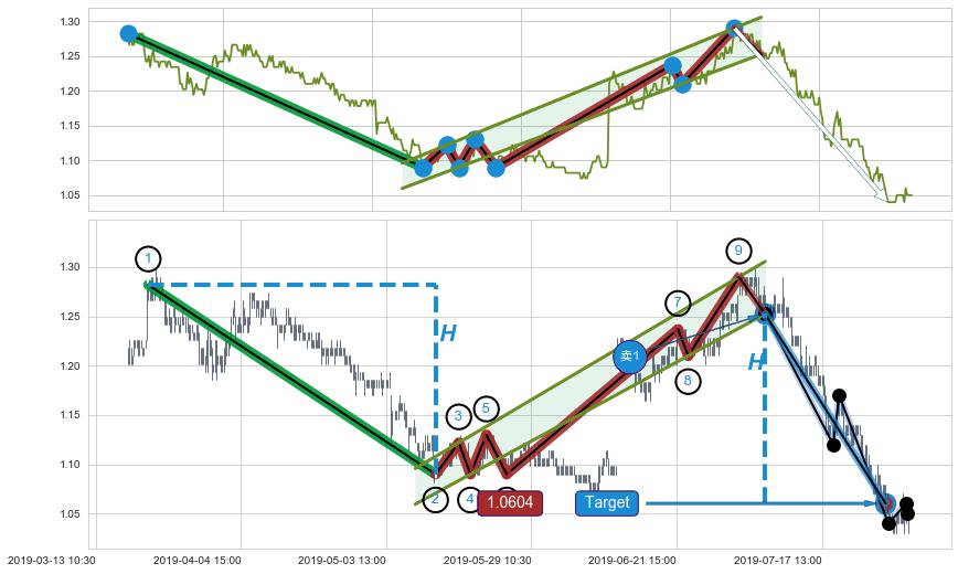 ➣ 最小中继整理跌幅→𝐇: 0.192000 (𝐇旗杆的长度:旗杆起点→顶点)