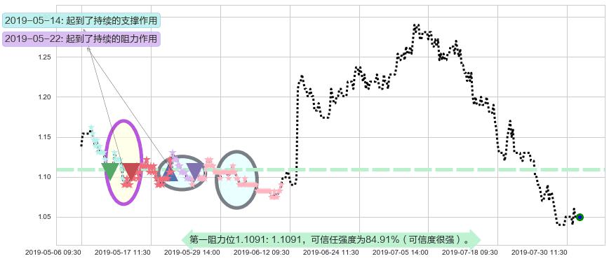 ♘ 阻力价格位1.1091,可信任强度84.91%,距离最后交易2019-07-31 15:00形成的收盘价格1.0500相差 +5.63%
