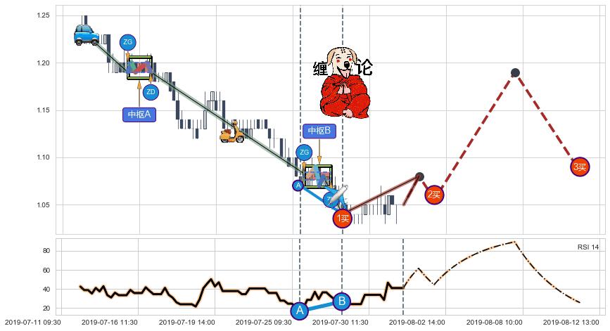 ➣ 【中枢B】:07-25:14-07-26:11,中枢由4笔构成,共5交易小时, ZG=1.0800, ZD=1.0800