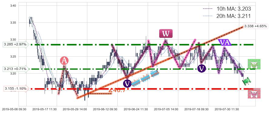♘ 阻力价格位3.285,可信任强度97.61%,距离最后交易2019-07-31 15:00形成的收盘价格3.190相差 +2.97%