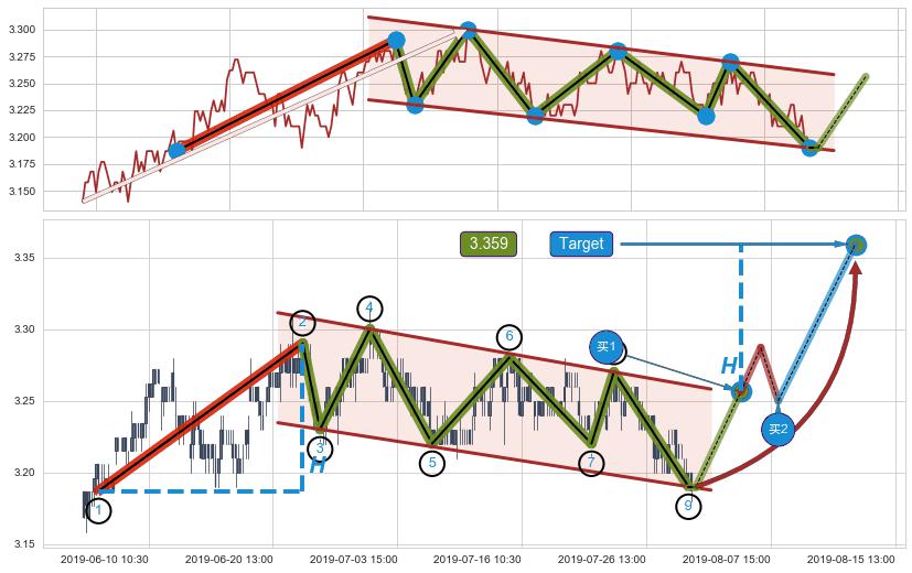 ➢ AI预测: 假定反转如期而至,第❸价格目标位置(08-14:12, 3.300)