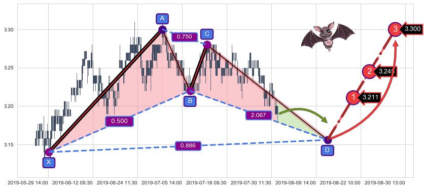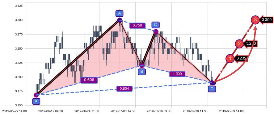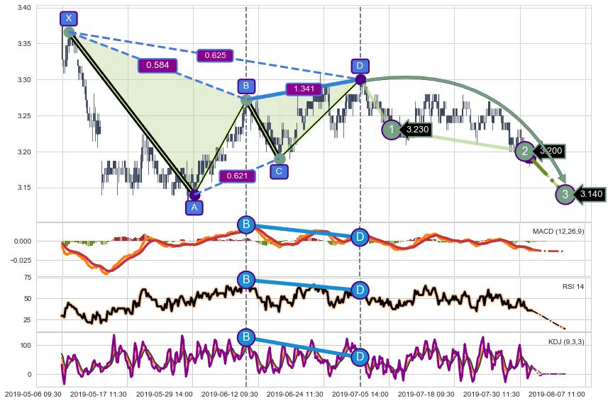 ➣ 未完成【蝙蝠】形态起点X: 05-29:15, 已到达C点: 07-12:11, 预测最终D点: 08-13:15, 共310交易小时