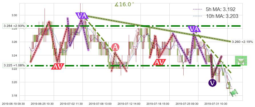 ♘ 阻力价格位3.284,可信任强度94.58%,距离最后交易2019-07-31 15:00形成的收盘价格3.190相差 +2.93%