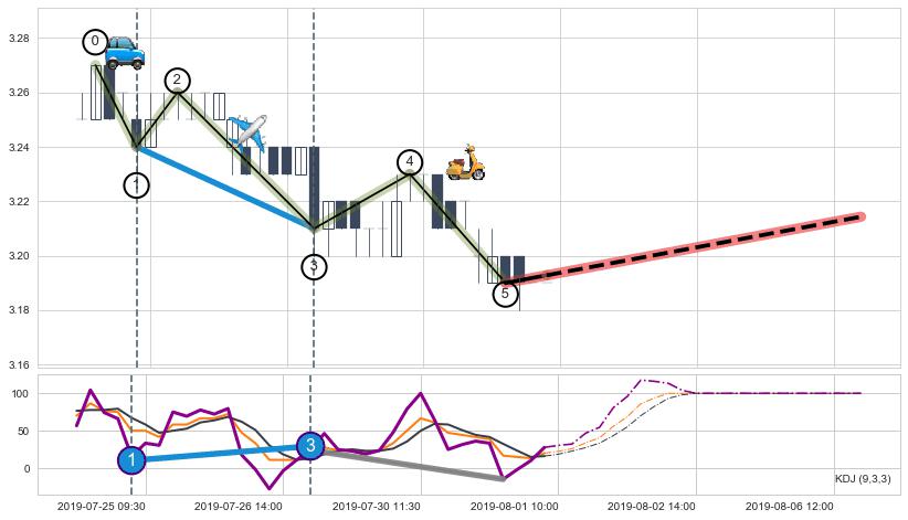 ➢ AI预测: 假定反转如期而至,第❶价格目标位置(08-05:13, 3.221)