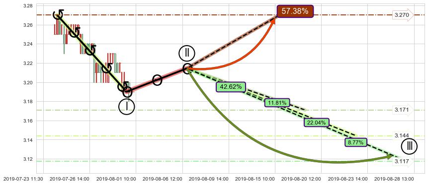 ➢ 循环浪继续向下【最高】位置(08-19:11, 3.171),匹配聚类样本比例27.70%, 可能性概率11.81%
