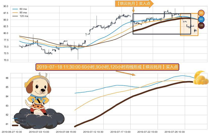 ⚀ 2019-07-08 14:00:00小时-2019-07-29 15:00:00小时显现 60小时-90小时-120小时均线 【烘云托月】买入点 看多信号,后市看涨,买入