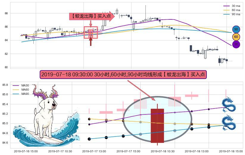 ⚀ 2019-07-18 09:30:00小时显现 30小时-60小时-90小时均线 【蛟龙出海】买入点 看多信号,后市看涨,买入