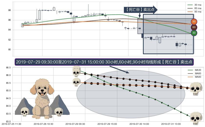 ⚀ 2019-07-29 10:30:00-小时至2019-07-31 15:00:00-小时显现 30小时-60小时-90小时均线 【死亡谷】卖出点 看空信号,后市看跌,卖出