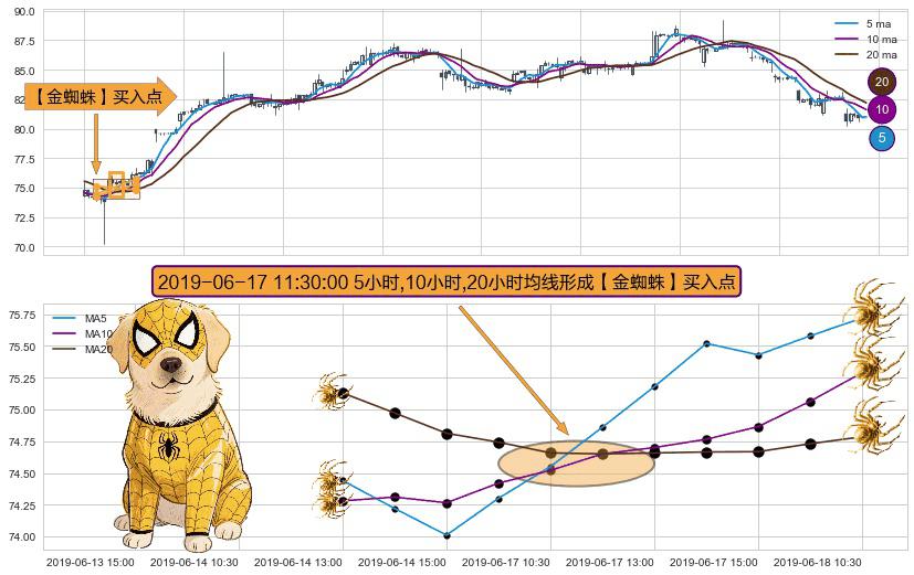 ⚀ 2019-06-17 11:30:00小时显现 5小时-10小时-20小时均线 【金蜘蛛】买入点 看多信号,后市看涨,买入