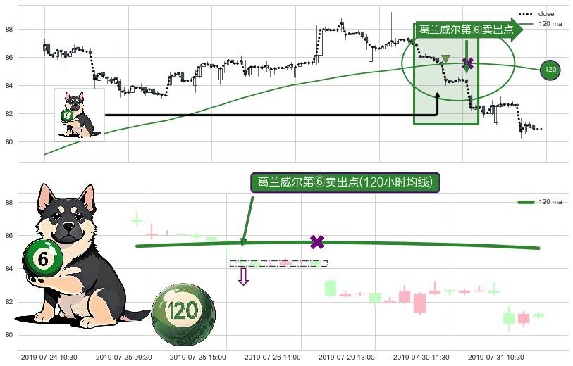 ⚀ 2019-07-26 09:30:00-小时显现 葛兰威尔均线 120小时均线 第⑥卖出点 走势反转见顶信号,后市看跌,卖出信号