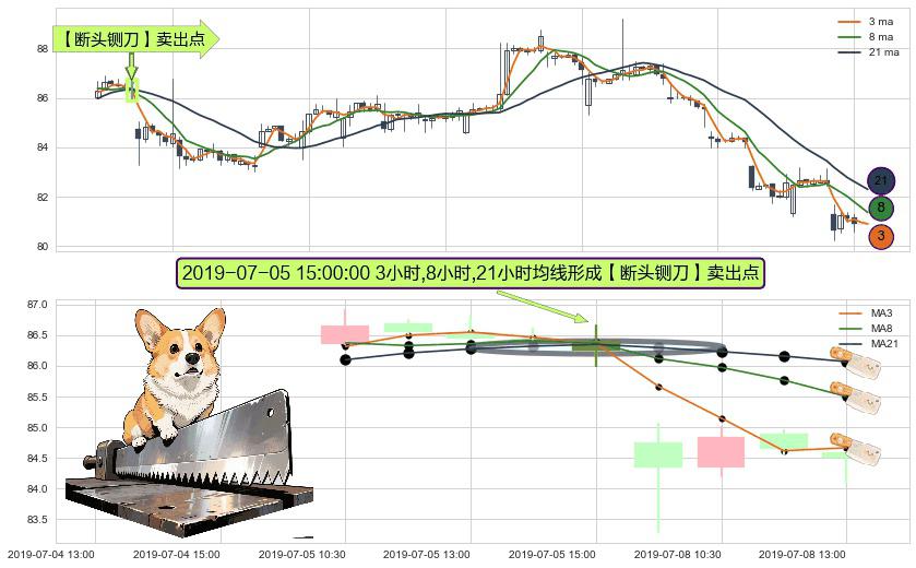 ⚀ 2019-07-05 15:00:00小时显现 3小时-8小时-21小时均线 【断头铡刀】卖出点 看空信号,后市看跌,卖出