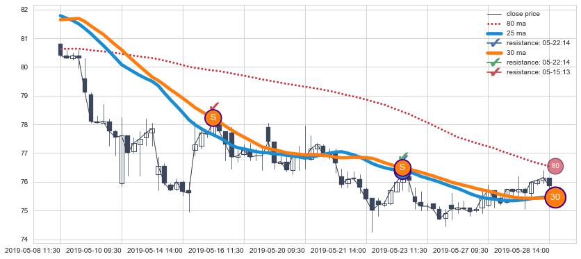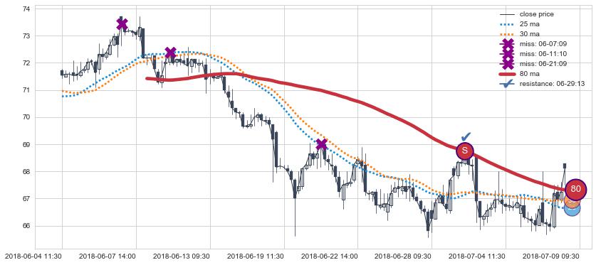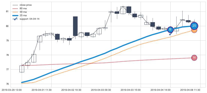 ⚂ 2019-07-18 09:30:00小时突然冒出一根大阳线,一下子顶穿三条均线且收盘价收在各条均线之上