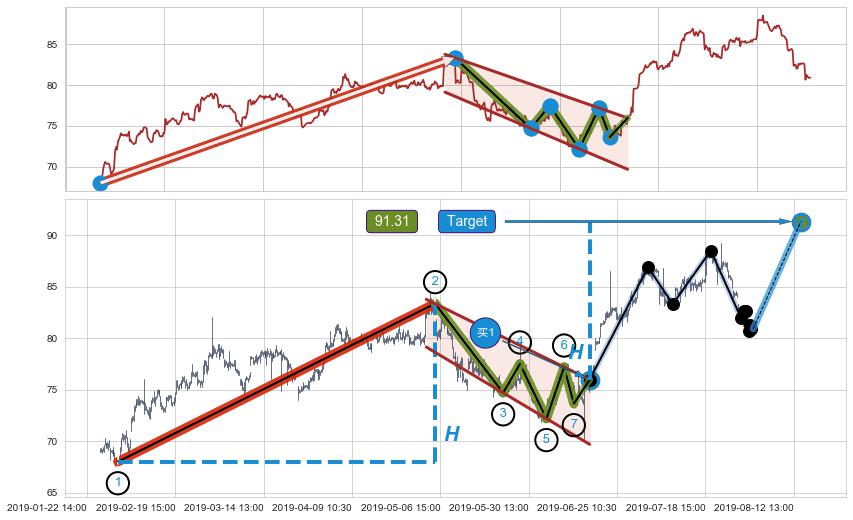 ➣ 最小中继整理涨幅→𝐇: 15.33 (𝐇旗杆的长度:旗杆起点→顶点)