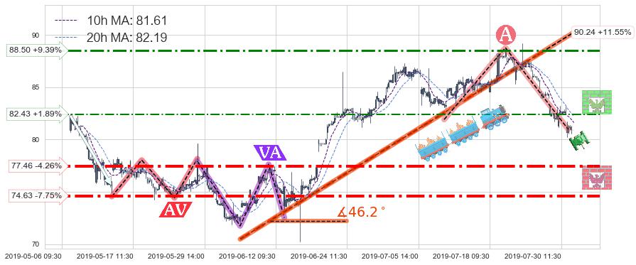 ➣ 2019-06-04 15:00-2019-07-26 09:30上升趋势存在反转[风险],其原上升趋势的支撑位(90.24)已破位[强阻力信号],原上升趋势角度: 46.2˚