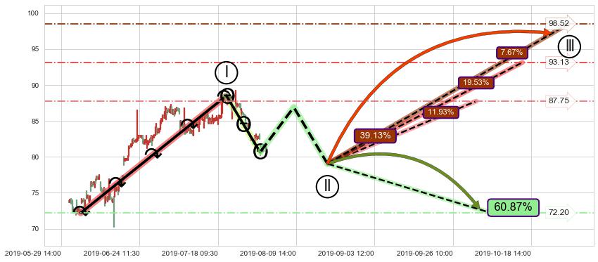 ➢ 循环浪继续向上【最低】位置(10-03:10, 87.75),匹配聚类样本比例30.49%, 可能性概率11.93%