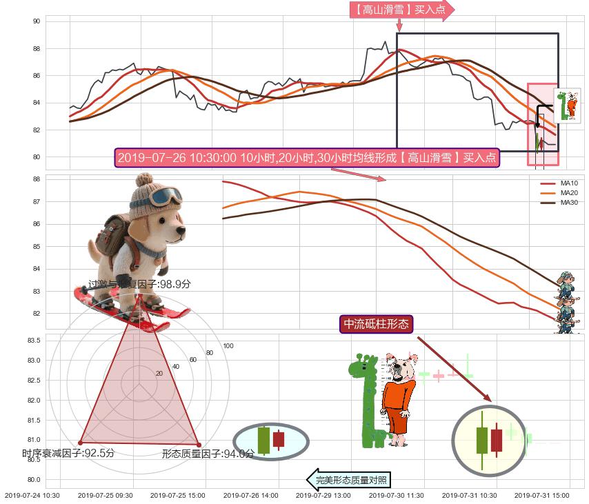 从2019-07-10 14:00至2019-07-31 15:00,共包含92个小时,阶段股价下跌-2.78%,阶段股价变动位移路程比: 1 : 10