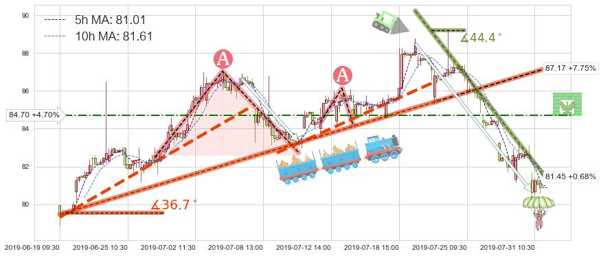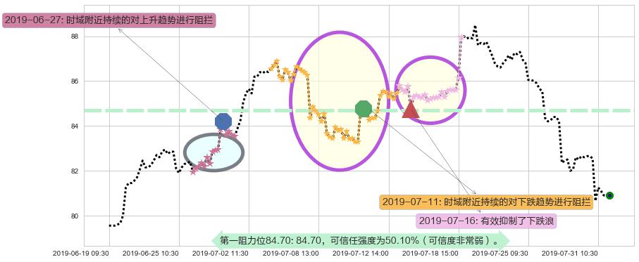 2019-07-16: 第一阻力位84.70有效抑制了下跌浪,成功阻止了价格的继续下跌。