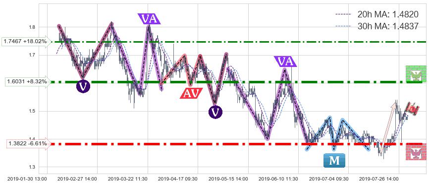 ♘ 阻力价格位1.6031,可信任强度91.53%,距离最后交易2019-07-31 15:00形成的收盘价格1.4800相差 +8.32%