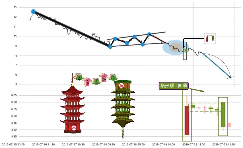 | 8 🅚:塔形顶 | 圆顶 ➕ ☯️:缠论中枢点下降缠中枢B破位后距离1买距离较远,随后猜想后续持续下跌(趋势跟踪) ☞ 看空信号 ⇥ 【🅚线】交织【图形】⇥ 综合量化分数: 46 | > |