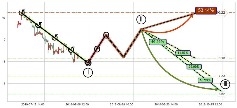 ➣ 预测:2019-08-06 14:00,【继续下探】稳定目前下跌趋势的前提下,预测价格:7.44