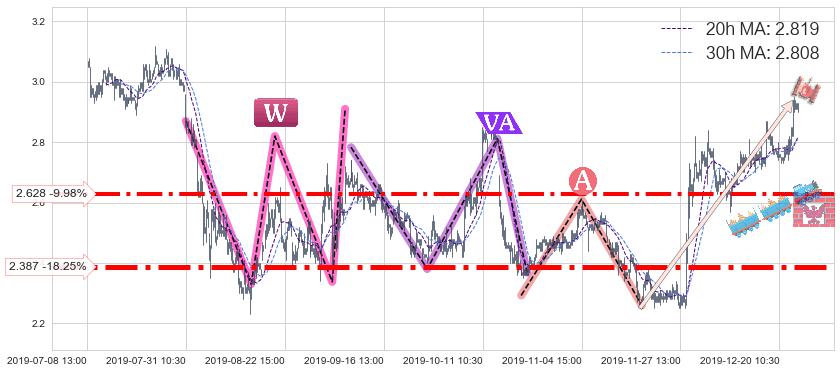 ♘ 支撑价格位2.628,可信任强度78.82%,距离最后交易2019-12-27 15:00形成的收盘价格2.920相差 -9.98%