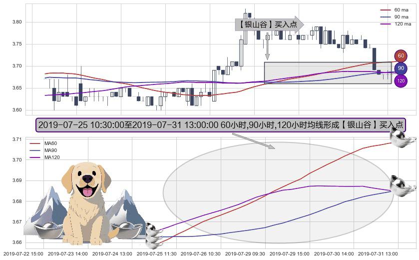 ⚀ 2019-07-25 11:30:00-小时至2019-07-31 13:00:00-小时显现 60小时-90小时-120小时均线 【银山谷】买入点 看多信号,后市看涨,买入