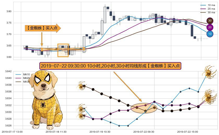 ⚀ 2019-07-22 09:30:00小时显现 10小时-20小时-30小时均线 【金蜘蛛】买入点 看多信号,后市看涨,买入