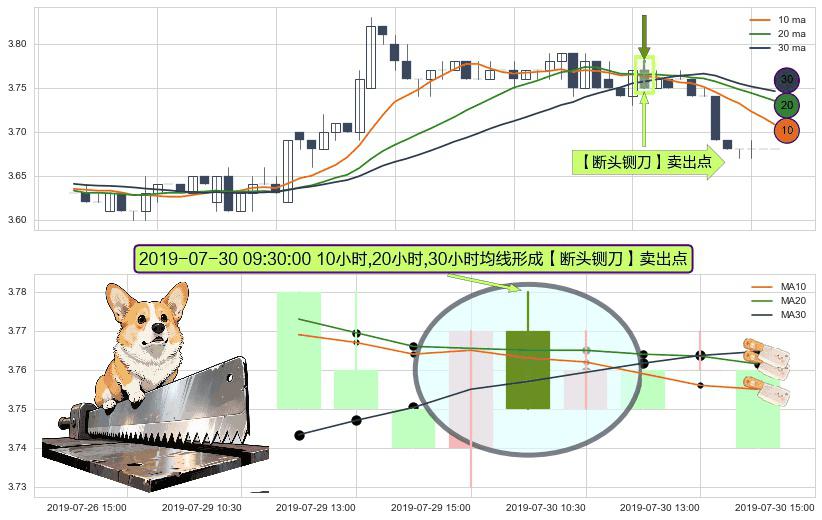 ⚀ 2019-07-30 09:30:00小时显现 10小时-20小时-30小时均线 【断头铡刀】卖出点 看空信号,后市看跌,卖出