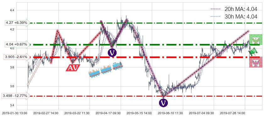 ♘ 支撑价格位3.905,可信任强度86.77%,距离最后交易2019-07-31 15:00形成的收盘价格4.01相差 -2.61%