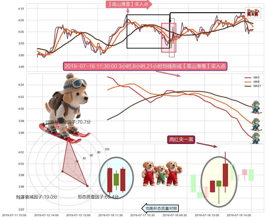 从2019-07-03 15:00至2019-07-11 15:00,共包含37个小时,阶段股价上涨1.53%,阶段股价变动位移路程比: 1 : 7