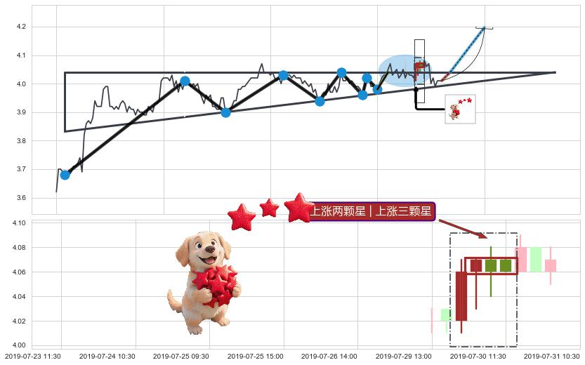 ➢ 最后的上涨趋势2019-06-19 13:00至2019-07-31 10:30:存在破位迹象,后续小调整或者反转下跌