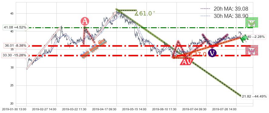 ♘ 支撑价格位36.01,可信任强度92.47%,距离最后交易2019-07-31 15:00形成的收盘价格39.30相差 -8.38%