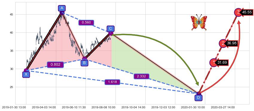 ➣ 未完成【蝴蝶】形态起点X: 01-30:14, 已到达C点: 07-30:10, 预测最终D点: 01-17:10, 共1444交易小时