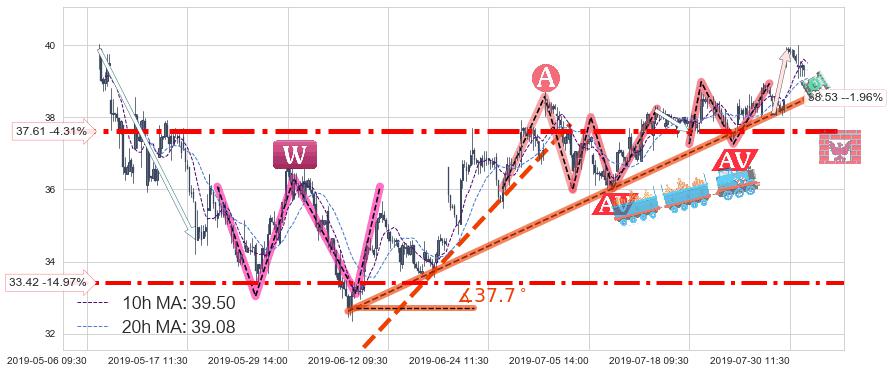 ♘ 支撑价格位37.61,可信任强度96.32%,距离最后交易2019-07-31 15:00形成的收盘价格39.30相差 -4.31%