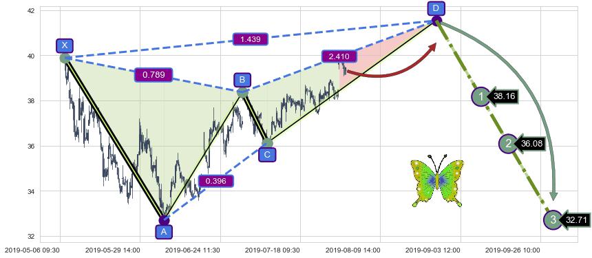 ➣ 未完成【蝴蝶】形态起点X: 05-07:09, 已到达C点: 07-09:10, 预测最终D点: 08-27:12, 共455交易小时