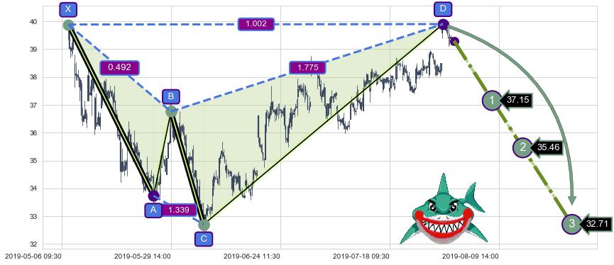 ➣ D点拟合预测价格41.54,距离最后交易收盘价格39.30相差 +5.69%
