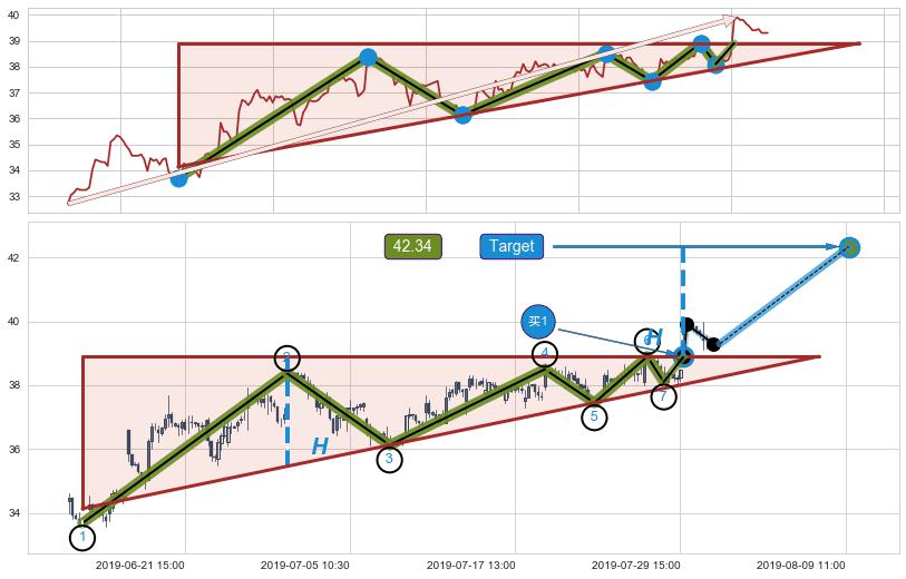 ➢ 【空方力量耗尽,多方打破攻守平衡点】上升三角形中继整理, 已在07-30:09突破【阻力】颈线 38.90 →演变成上升通道