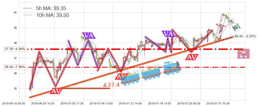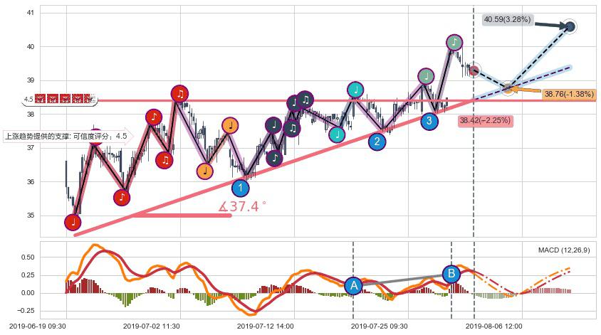 ➢ 预测:2019-08-05 12:00,【小幅回撤】稳定目前上涨趋势的前提下,预测价格:38.76