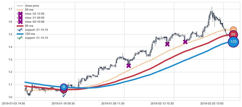 上涨趋势01-03 14:00-02-26 13:00,均线89, 125确认关键支撑1处