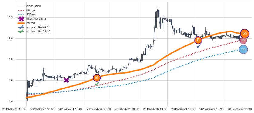上涨趋势03-21 15:00-05-02 10:30,均线55确认关键支撑2处
