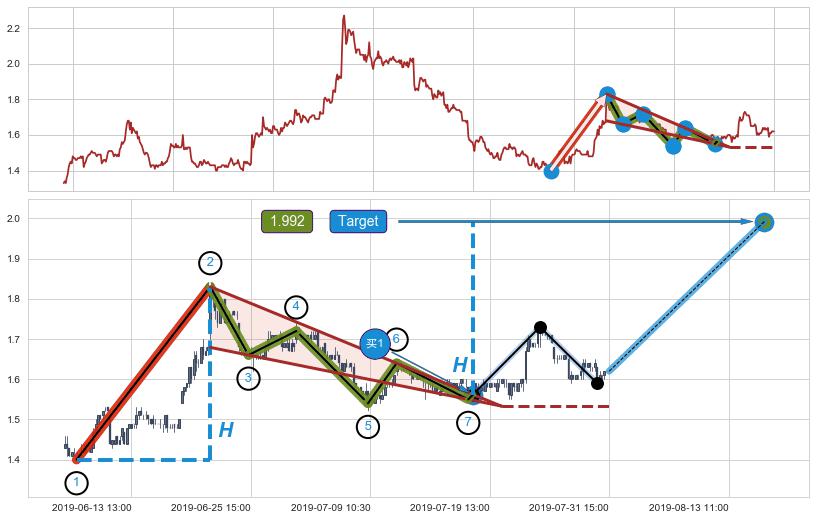 ➢ 最小中继整理涨幅→𝐇: 0.43000 (𝐇楔型旗杆的长度:楔型起点→顶点)