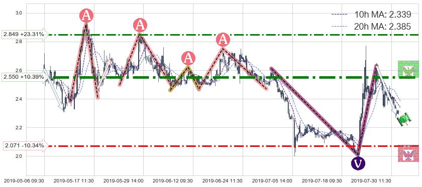 ♘ 阻力价格位2.550,可信任强度96.15%,距离最后交易2019-07-31 15:00形成的收盘价格2.310相差 +10.39%