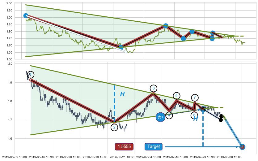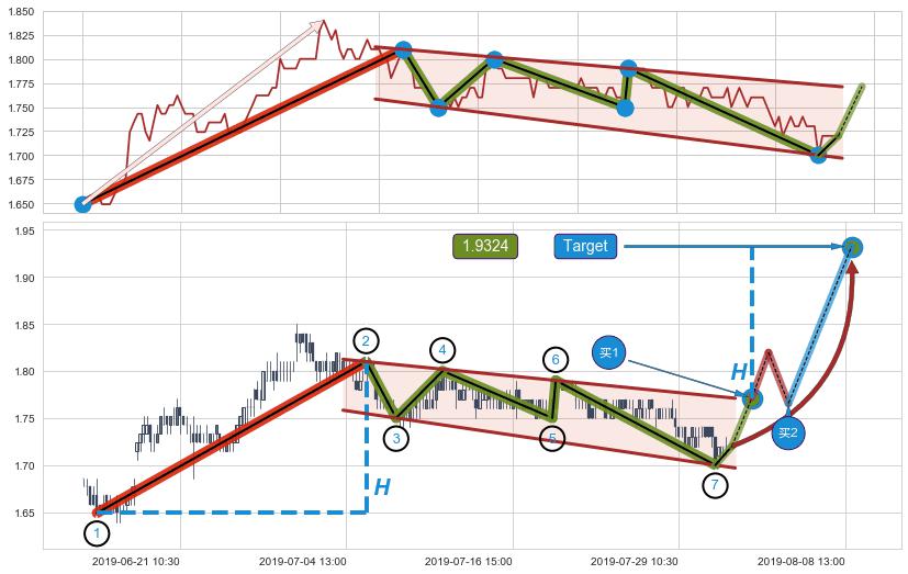 ➣ 最小中继整理跌幅→𝐇: 0.141000 (𝐇旗杆的长度:旗杆起点→顶点)